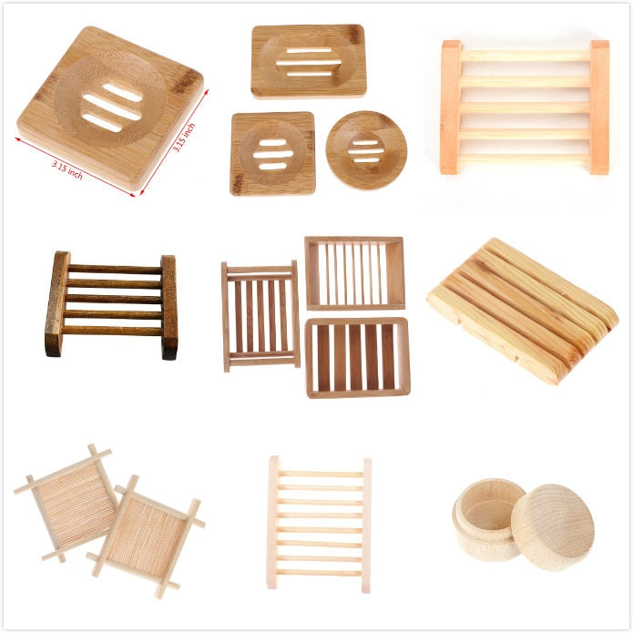 Natural Wooden Bamboo Soap Dish Wooden Soap Tray Holder Storage Soap Rack Plate Box Container For Bath Shower Plate Bathroom